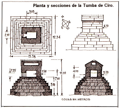 Pasargada, 530 a. Cto. Realizado en piedra. Tiene planta rectangular con cubierta a doble vertiente ó a dos aguas. Tiene una base escalonada con seis cuerpos de escalera. Está rodeado por una muralla y se dice que su inspiración se basa en los zigurats mesopotámicos.
